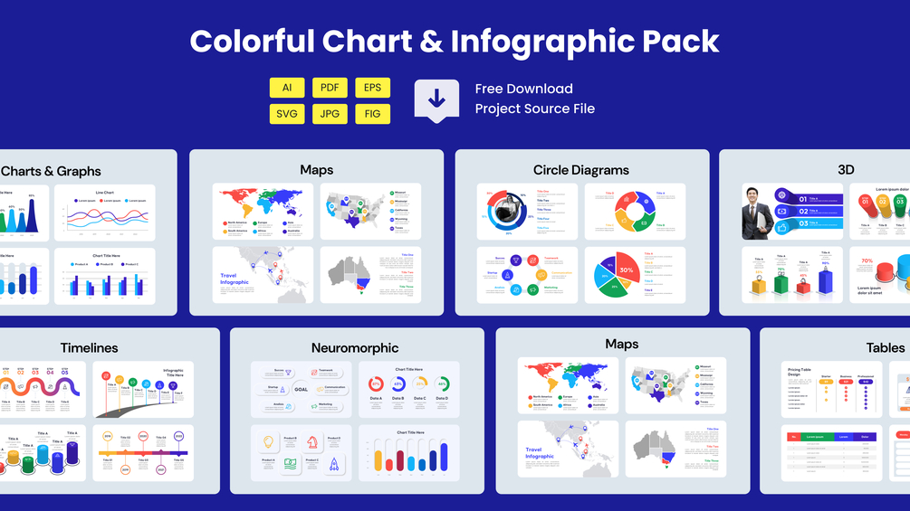 - 10+ Infographic Templates: Covers pie charts, bar graphs, line graphs, maps, and more.